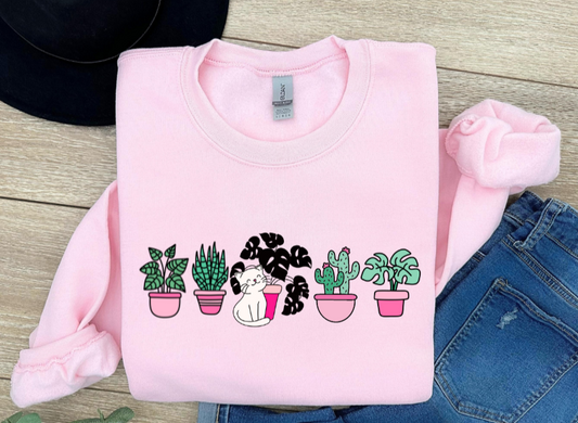 Smiling Cat Standing Next to a Plant Sweatshirt